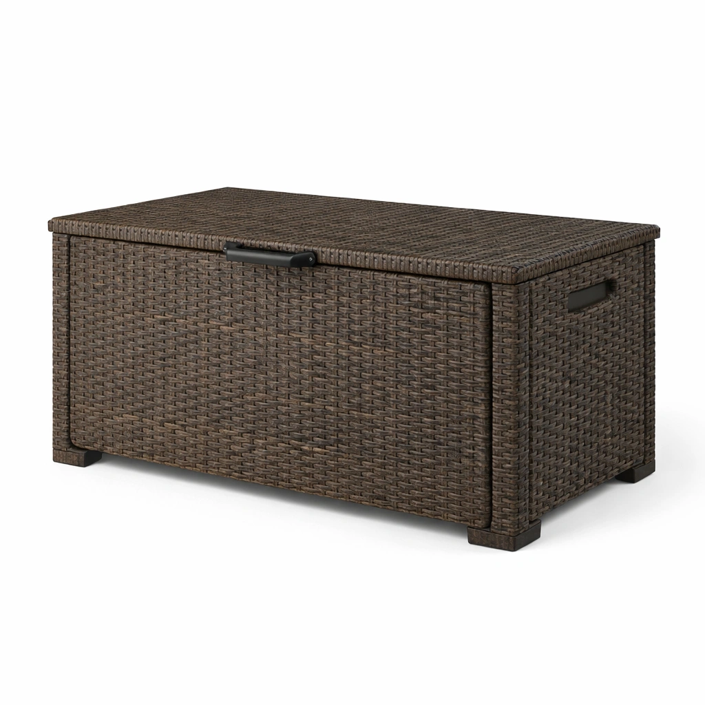 Arcón de almacenamiento para jardín de ratán sintético para exterior 117x58x45 cm