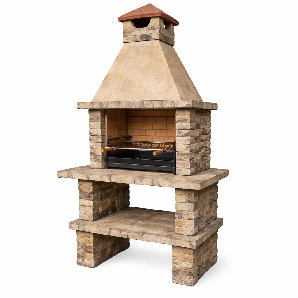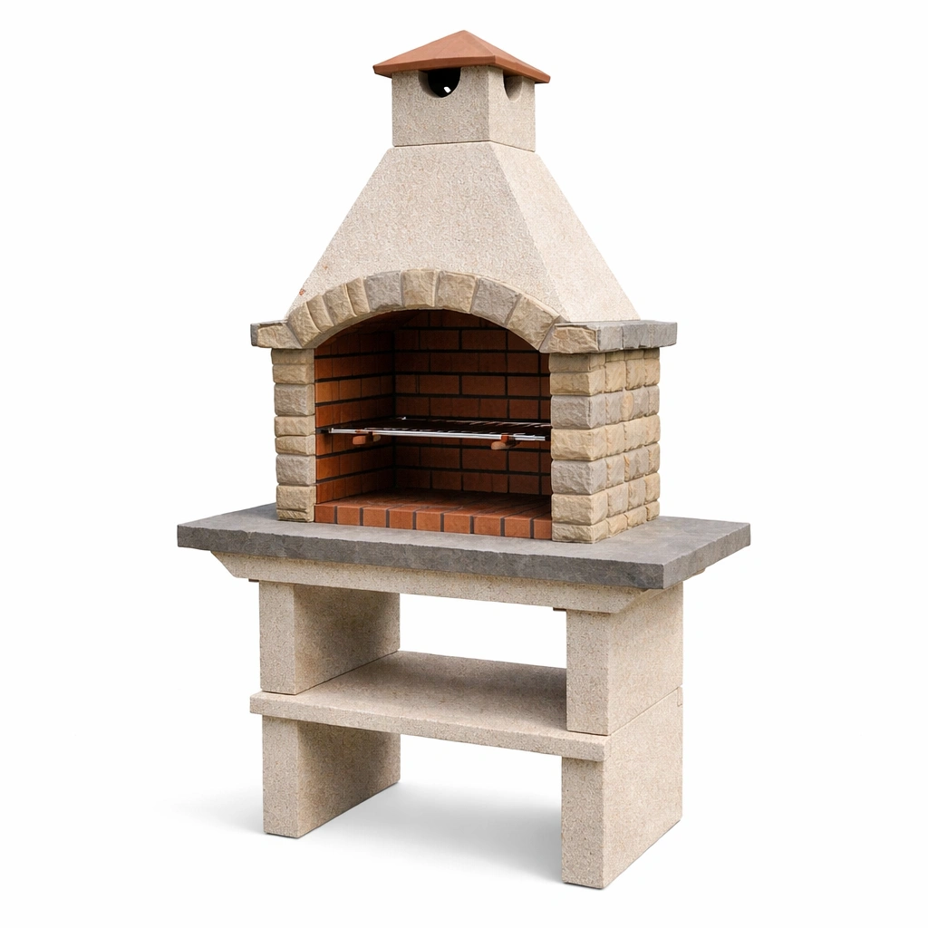 Barbacoa de ladrillo y piedra con chimenea 120x65x210 cm