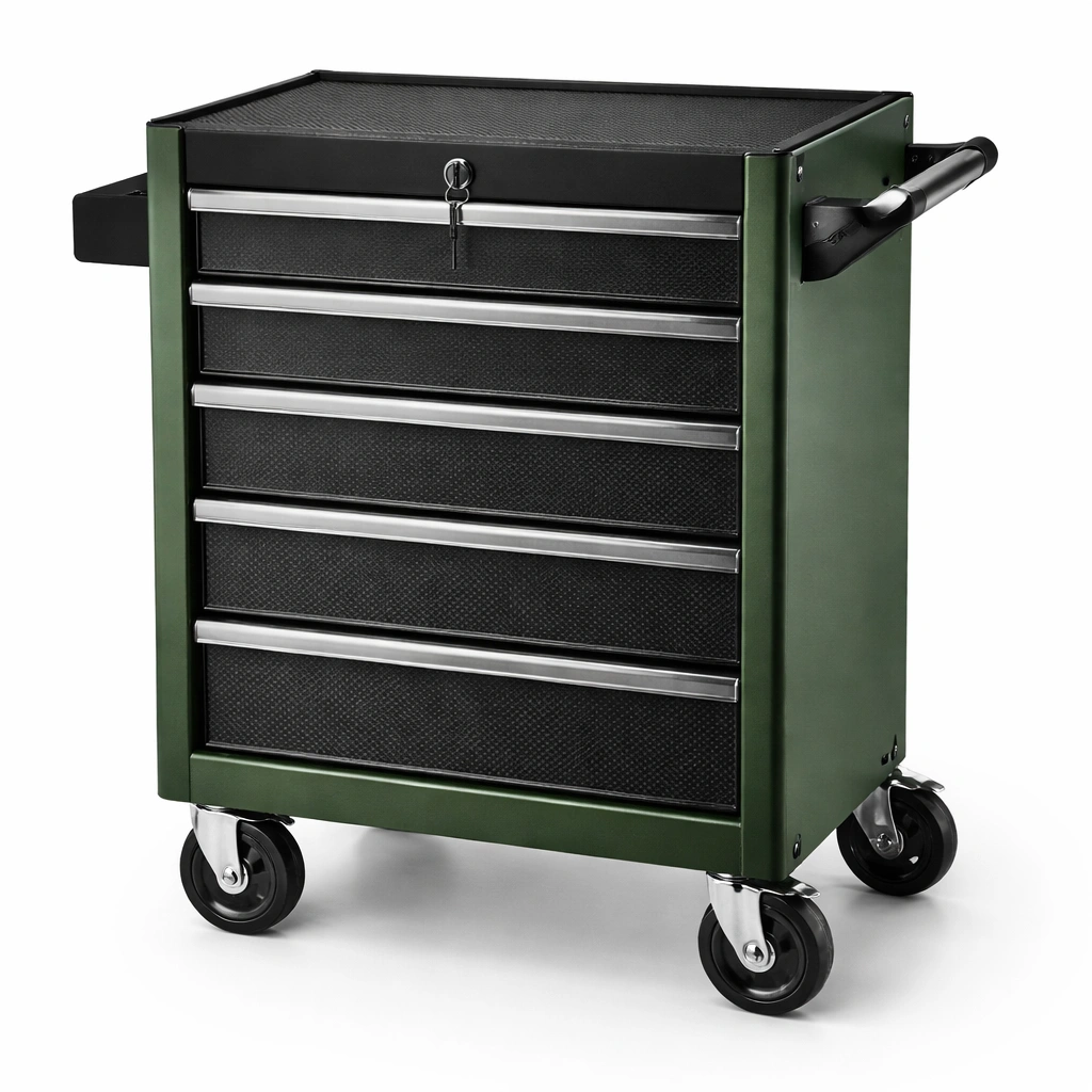 Carro de herramientas de acero verde con 5 cajones y ruedas