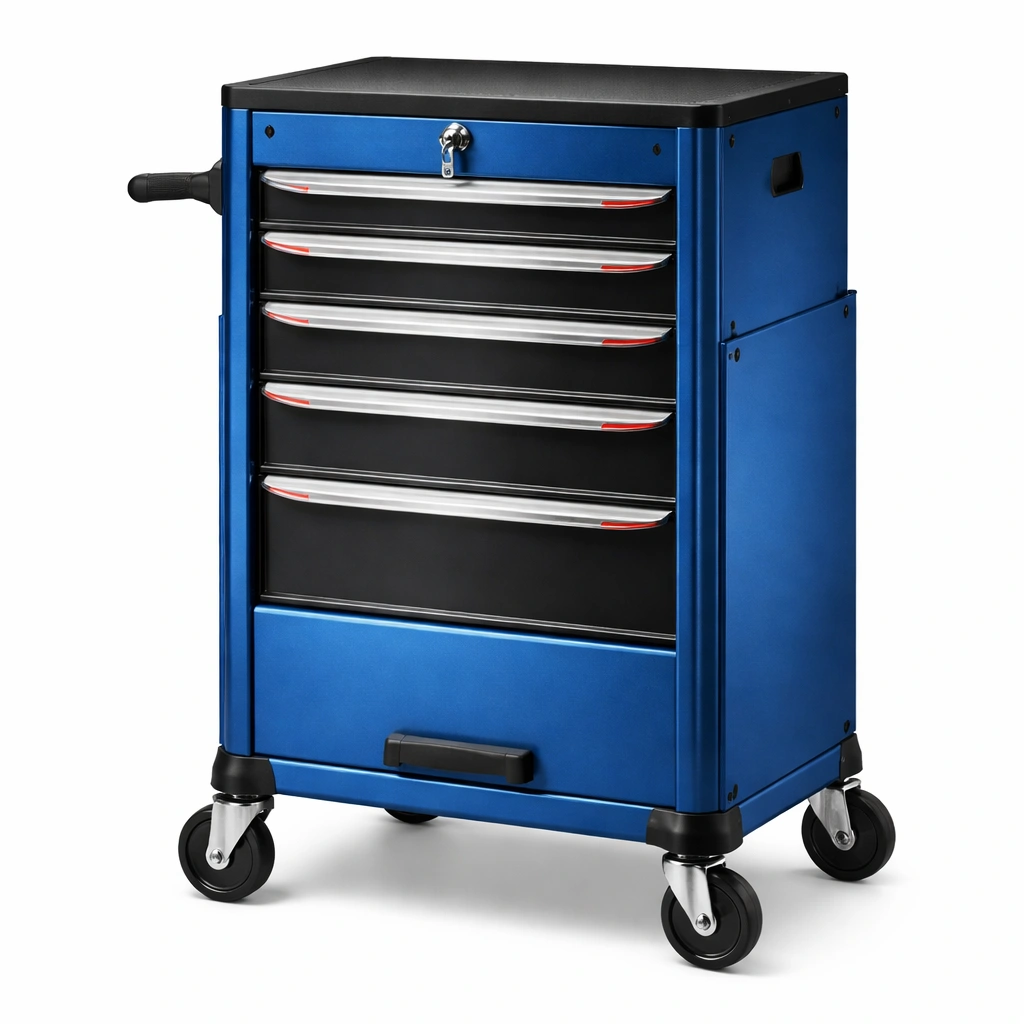 Carro de herramientas de metal azul con 6 cajones y ruedas