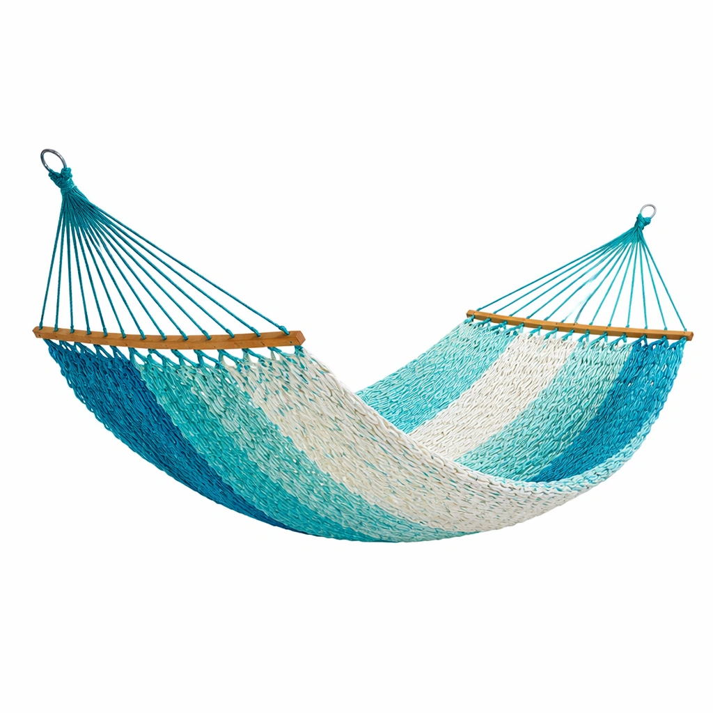 Hamaca de cuerda de algodón azul y blanco