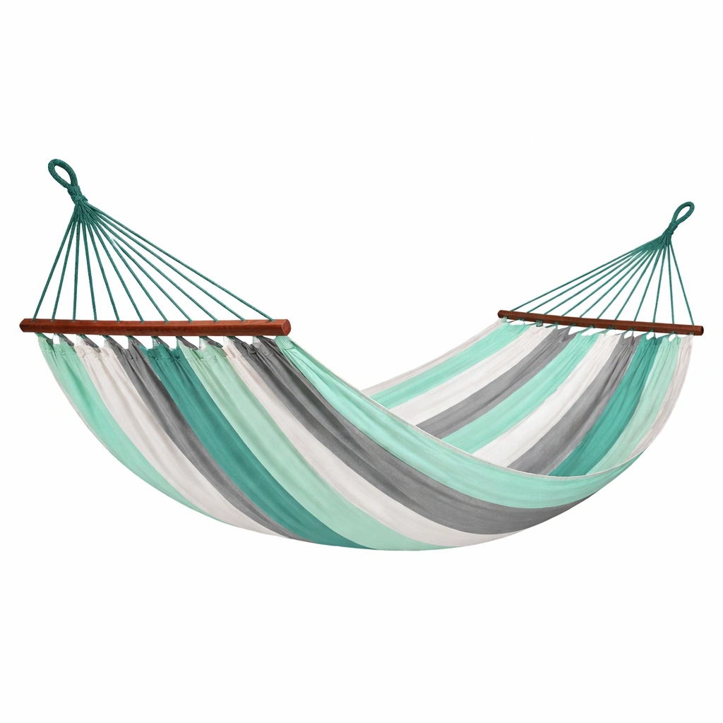 Hamaca de algodón y poliéster rayas verde blanco y gris